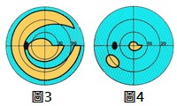 图中蓝色部份为青光眼病人看不清楚之视野范围